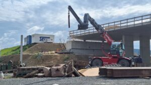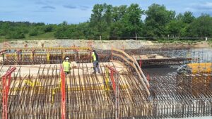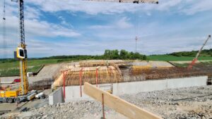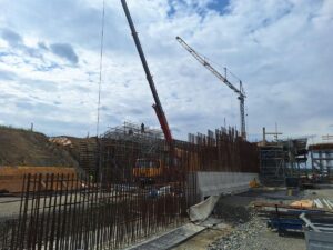 Práce na stavbě úseku D55 Olomouc–Kokory se nezastavují ani o víkendech. Stavební aktivita na stavbě dálnice tentokrát probíhala zejména na mostech. Dělníci se v uplynulých dnech zaměřili na ekodukt (zajistí průchodnost biokoridoru), kde probíhala montáž bednění a armování výztuže před následnou betonáží. Činnosti postoupily také na přemostění budoucí D55 u Velkého Týnce, kde tamní most má již horní mostovku vybetonovanou a běží práce okolo bočních opěr. Nový úsek Olomouc–Kokory otevře ŘSD do konce letošního roku.